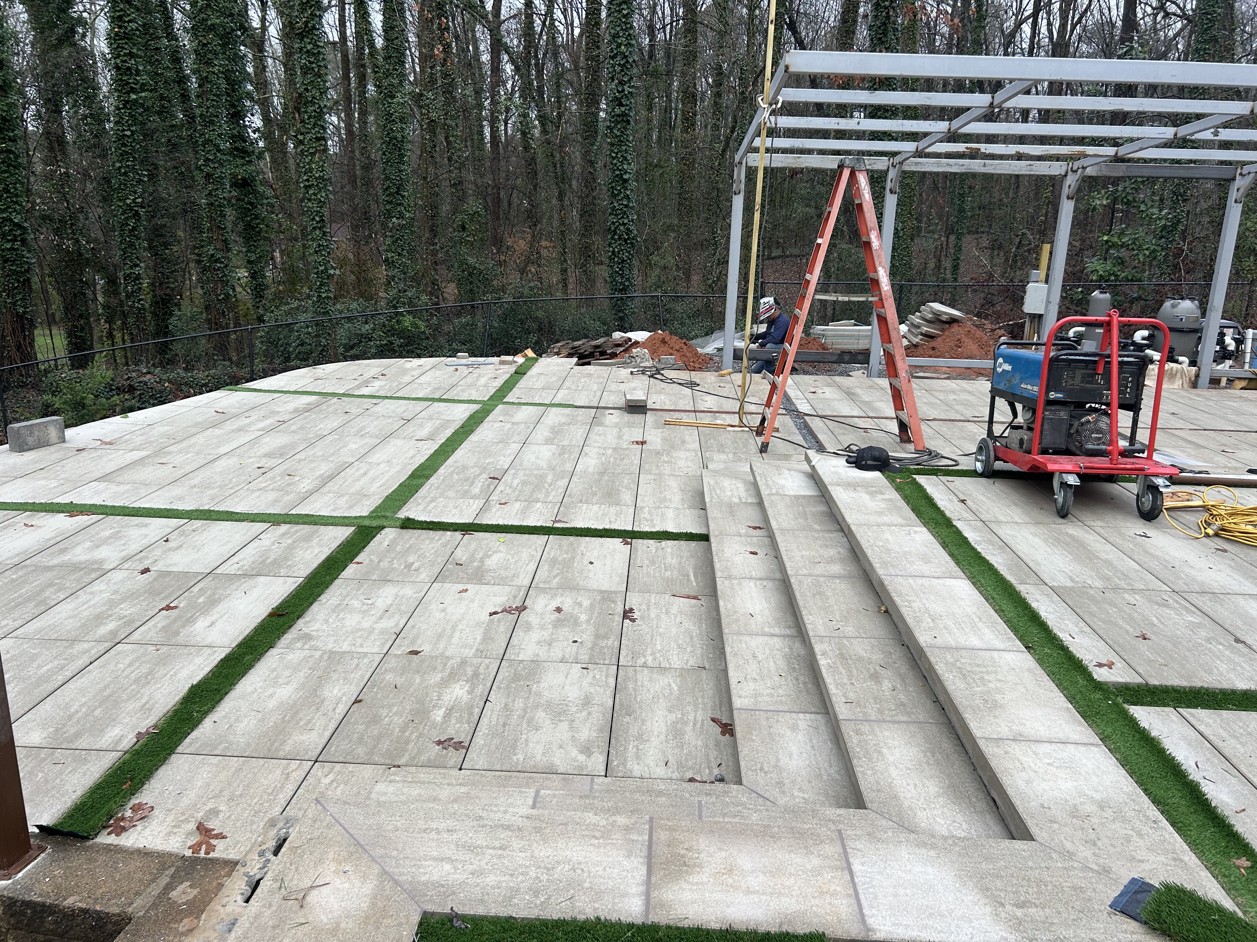 The homeowners had a large, sloped backyard that had gone largely unused for years. Previous landscaping was overgrown, the existing pool and patio were cracked and dated, and the property lacked any real outdoor living functionality. Despite the home's prime Buckhead location and generous lot size, the backyard felt disconnected from the house and offered no space for entertaining, relaxation, or family use.